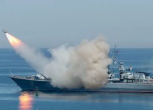 Το βίντεο που ελήφθη από το Reuters έδειξε ένα λευκό ίχνος καπνού να ανεβαίνει ψηλά στον ουρανό.