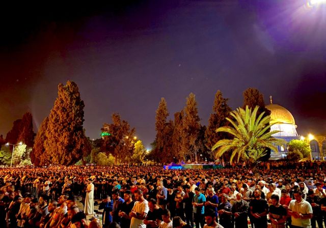 Στο τέμενος Αλ Άκσα, τον τρίτο ιερότερο τόπο του Ισλάμ, που είναι χτισμένο στον ευρύτερο χώρο του αρχαίου εβραϊκού ναού, ένα πλήθος Παλαιστινίων, ωστόσο, προσευχόταν ειρηνικά μετά το ιφτάρ, το κύριο γεύμα στο τέλος της νηστείας της ημέρας κατά τη διάρκεια του ιερού μήνα του Ραμαζανιού.