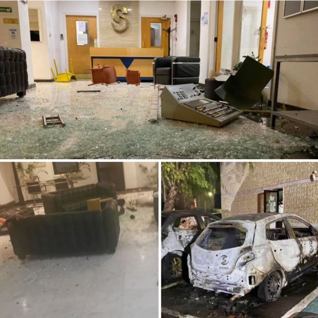 Το συγκρότημα δέχθηκε επίθεση από τον όχλο ο οποίος πέταξε κροτίδες και προκάλεσε ζημιές στα αυτοκίνητα του σταθμού, καθώς και στο εσωτερικό του κτιρίου.