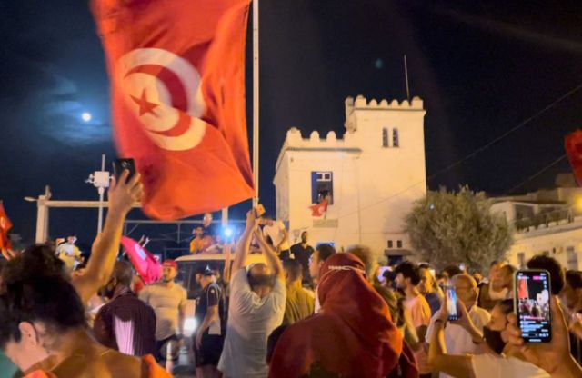Τυνήσιοι οι οποίοι υποστηρίζουν αντίπαλες πολιτικές δυνάμεις, μετά την απόφαση του προέδρου της χώρας Καΐς Σαγιέντ να αποπέμψει τον πρωθυπουργό και την κυβέρνησή του και να αναστείλει τη λειτουργία του κοινοβουλίου, ανταλλάσσουν πέτρες έξω από το κτήριο της Βουλής το πρωί της Δευτέρας, σύμφωνα με αυτόπτη μάρτυρα τον οποίο επικαλείται το πρακτορείο Reuters.