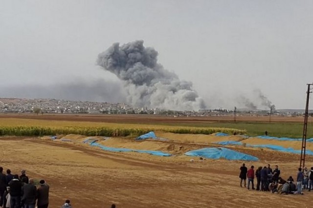 Ωστόσο όπως επιβεβαίωσαν πηγές μέσα από την πόλη πρόκειται για βομβαρδισμούς των συμμαχικών δυνάμεων, σε σημείο που είχαν υποδείξει οι Κούρδοι μαχητές, που έρχονται να προστεθούν στους 9 βομβαρδισμούς που είχαν πραγματοποιήσει τα συμαχικά αεροπλάνα νωρίτερα.