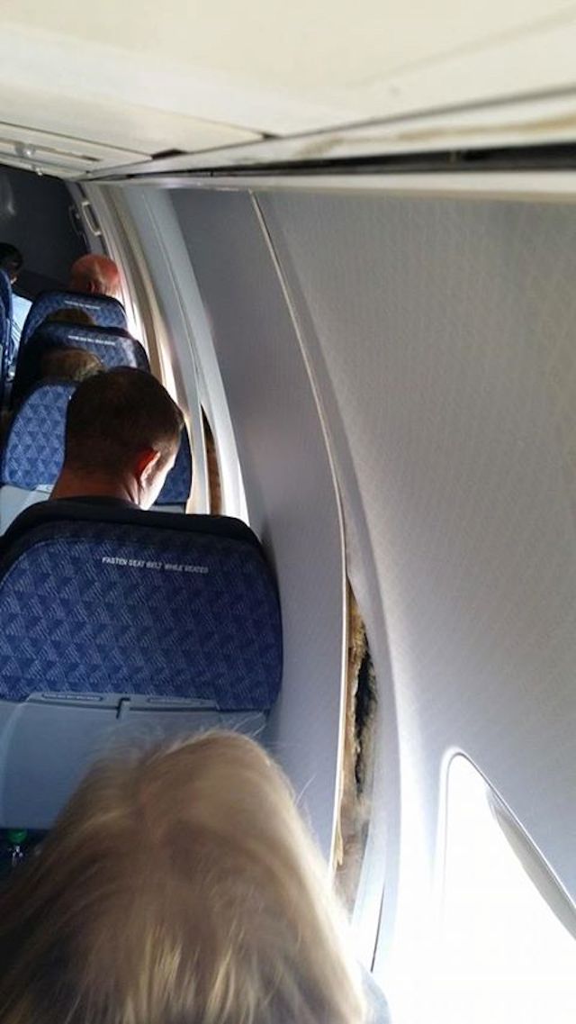 Οι επιβάτες δήλωσαν ότι ακούστηκε ένας δυνατός θόρυβος και οι τοίχοι του αεροσκάφους άρχισαν να εμφανίζουν ρωγμές.