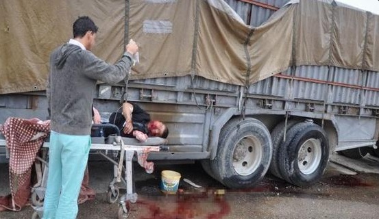 Οι φωτογραφίες που έχουν αναρτήσει οι Κούρδοι στο Twitter δείχνουν έναν Κούρδο πρόσφυγα από την Κομπάνι που τον πυροβόλησε ο τουρκικός στρατός στα σύνορα.
