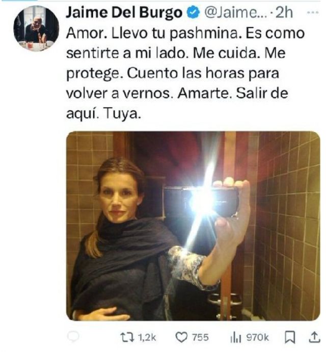 Στις αρχές Δεκεμβρίου, σε ανάρτησή του στο «Χ» ο 53χρονος Χάιμε ντελ Μπούργκο πόσταρε μια selfie φωτογραφία της Λετίθια πριν από περίπου 15 χρόνια να φορά μια πασμίνα και να ποζάρει μπροστά σε έναν καθρέφτη.