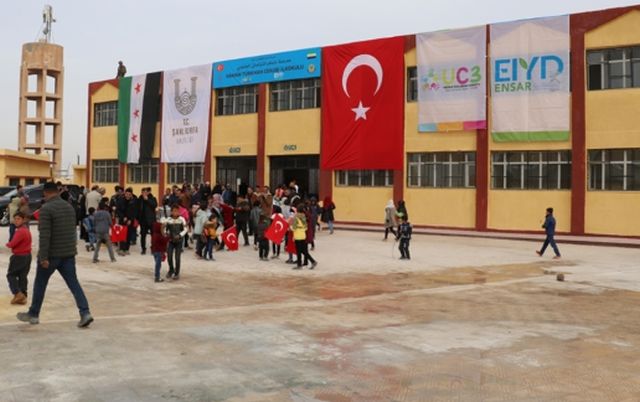 Σχολείο στην κατεχόμενη βόρεια Συρία. Δεσπόζει η τουρκική σημαία.