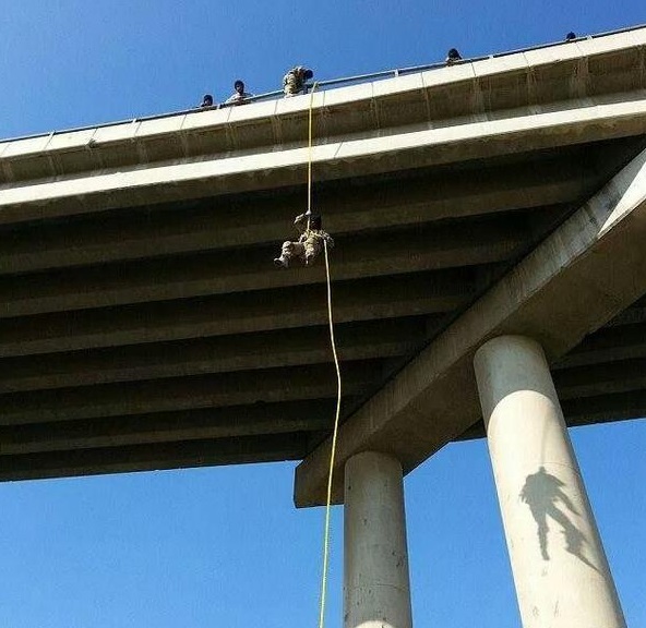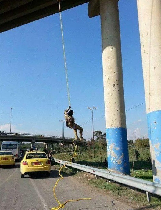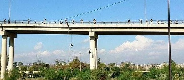 Νέες φωτογραφίες που είδαν το φως της δημοσιότητας δείχνουν τις Ειδικές Δυνάμεις των τζιχαντιστών να εκπαιδεύονται στη Μοσούλη και συγκεκριμένα να κατεβαίνουν με σχοινιά από γέφυρες της πόλης.
