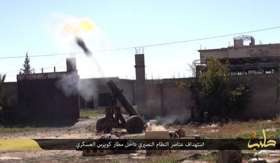 Το Ισλαμικό Κράτος βομβάρδισε με όλμους το στρατιωτικό αεροδρόμιο του Kweirs ή Kweiris στο Αλέππο (Χαλέπι) της Συρίας, στο οποίο βρίσκονται στρατιώτες.