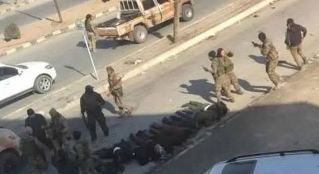 Η τουρκική προπαγάνδα ισχυρίζεται ότι η φωτογραφία δείχνει Κούρδους μαχητές στη Μανμπίτζ αιχμάλωτους των νεο-οθωμανών.