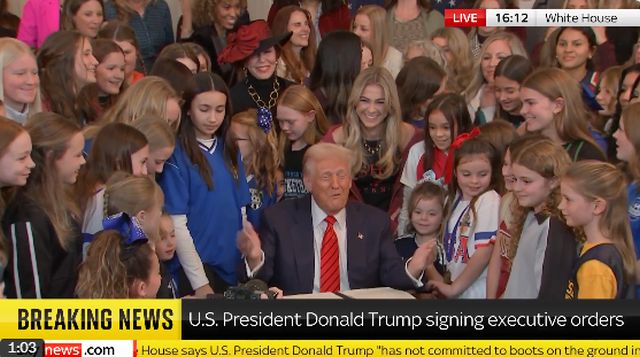 Κατά την υπογραφή του διατάγματος, περιστοιχισμένος από γυναίκες και νεαρές αθλήτριες, ο Τραμπ διακήρυξε: «Ο πόλεμος στον γυναικείο αθλητισμό τελείωσε».