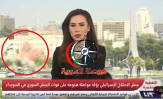 Λίγα λεπτά αφότου ο Υπουργός Άμυνας του Ισραήλ, Ισραέλ Κατζ, προειδοποίησε την Τετάρτη 16/07 για «οδυνηρά χτυπήματα» κατά του συριακού καθεστώτος, μια ζωντανή τηλεοπτική μετάδοση κατέγραψε τη στιγμή ενός αεροπορικού πλήγματος πίσω από το στούντιο ειδήσεων.