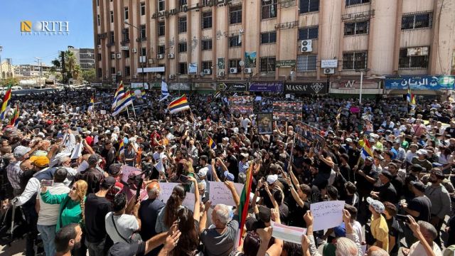 Οι κάτοικοι της πόλης Σουέιντα, στη νότια Συρία, διοργάνωσαν το Σάββατο 30/08 διαδήλωση ζητώντας «ανεξαρτησία και αυτοδιάθεση».