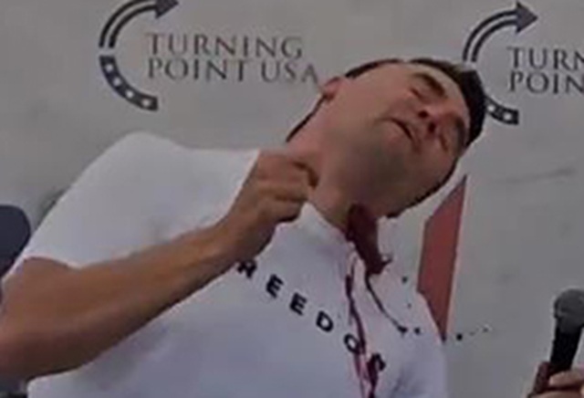 Βίντεο από το σημείο δείχνει τον Κερκ να χτυπιέται στον λαιμό και να πέφτει από την καρέκλα του.