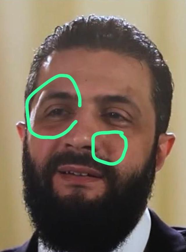 – هذه صور الشرع من اللقاء الذي بثته قناة الأخبارية وانظروا إلى الكدمات في وجهه أوضح من الشمس في رابعة النهار