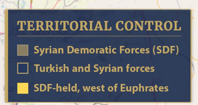 Αντιθέτως, η Τάμπκα βρίσκεται υπό τον έλεγχο των SDF από το 2017, στο πλαίσιο της εκστρατείας κατά του Ισλαμικού Κράτους (ISIS).
