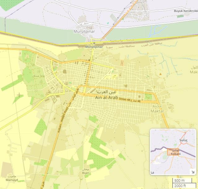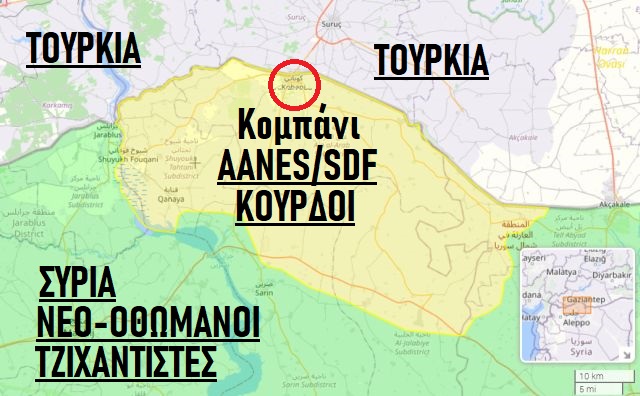 Η Κομπάνι, όπως βλέπετε και στον χάρτη, «ακουμπά» στην Τουρκία.