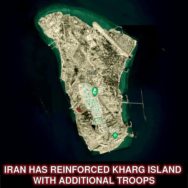 Κλιμάκωση στον Κόλπο: Οχυρώνεται η Νήσος Χαρκ υπό τον Φόβο Αμερικανικής Απόβασης / Σύμφωνα με τελευταίες πληροφορίες από πηγές των αμερικανικών υπηρεσιών πληροφοριών, το Ιράν έχει προχωρήσει σε σημαντική ενίσχυση των αμυντικών του μέτρων στη νήσο Χαρκ, προετοιμαζόμενο για το ενδεχόμενο μιας χερσαίας επιχείρησης των ΗΠΑ. Η Τεχεράνη φέρεται να έχει αναπτύξει πρόσθετες στρατιωτικές δυνάμεις, συστήματα αεράμυνας και στρώματα ναρκών (τόσο κατά προσωπικού όσο και κατά αρμάτων) κατά μήκος των ακτών, στοχεύοντας στα σημεία όπου θα μπορούσε να πραγματοποιηθεί μια αμφίβια απόβαση.