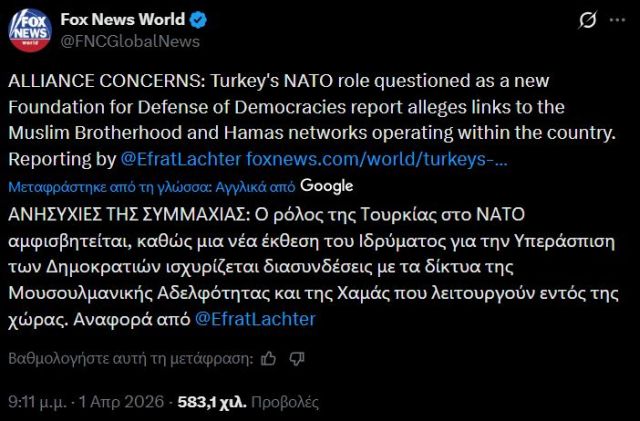 ΑΠΟΚΛΕΙΣΤΙΚΟ: Μια νέα έκθεση εγείρει σοβαρές ανησυχίες για τον ρόλο της Τουρκίας στη Μέση Ανατολή, υποστηρίζοντας ότι υπό την ηγεσία του Προέδρου Ρετζέπ Ταγίπ Ερντογάν, η χώρα έχει απομακρυνθεί από την παραδοσιακή ευθυγράμμισή της με τη Δύση, επιλέγοντας μια βαθύτερη εμπλοκή με ισλαμιστικά κινήματα, συμπεριλαμβανομένης της Μουσουλμανικής Αδελφότητας.